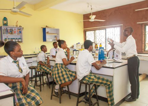 The school building is a massive modern structure with well-ventilated and spacious classrooms, a school hall with sitting capacity of 500 students, several administrative offices, the ICT centre, the library, science laboratory, Introductory Technology workshop, Home Economics Lab and the sick bay.